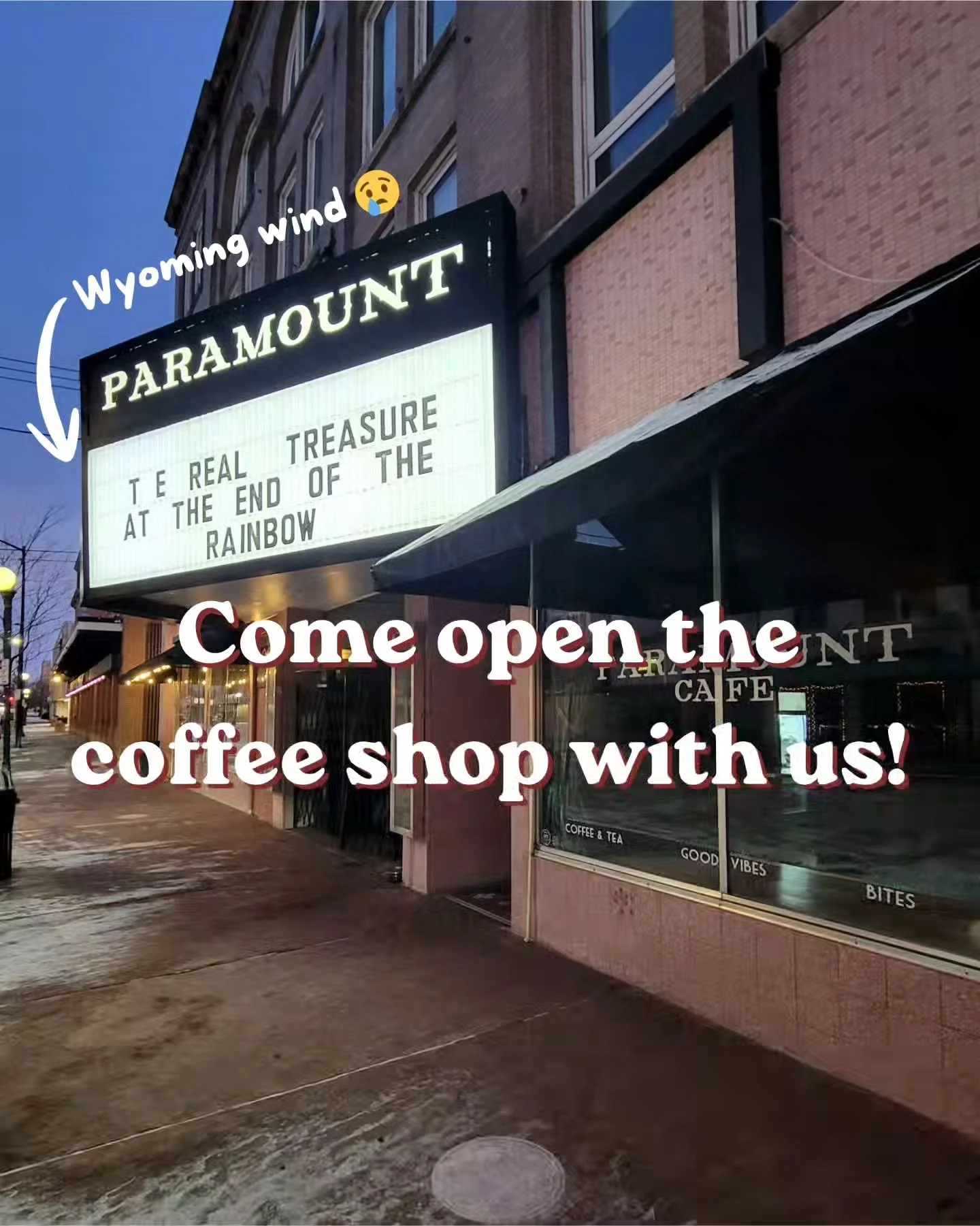 The café is nestled on the street level of the Paramount Building in downtown Cheyenne. Originally a theater at the turn of the century, our building still retains its vintage charm and oh, how we wish these walls could talk.
